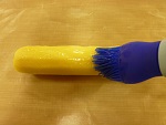 ③の形を整えてから表面にほぐした卵白を刷毛で塗り、グラニュー糖を転がしながらまぶします。ナイフ等で1cmの厚さに切り、オーブン用シートを敷いた天板に間隔をあけて並ベます。