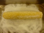 バットに仕上げ用のグラニュー糖を広げておきます。