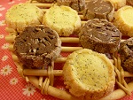 ●プレーン生地に紅茶のティーパックの中身(または紅茶の葉大さじ1を刻んで加える)と紅茶生地が出来上がります。また、ショコラ生地はアーモンドスライスの代わりにチョコチップ45gを加えても美味しく出来上がります。