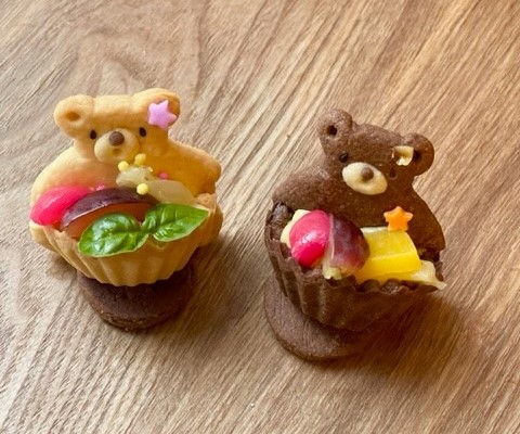 くまのクッキーは顔と手足をそれぞれ焼くとタルトに刺しやすいです。