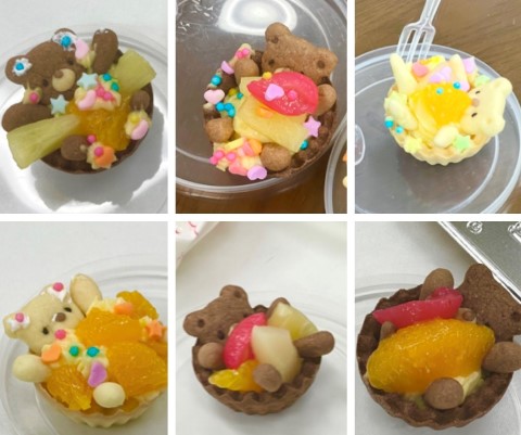 おなかから上をカットしてから焼いたくまのクッキーを、カスタードクリームに埋め込んでもかわいいです。
