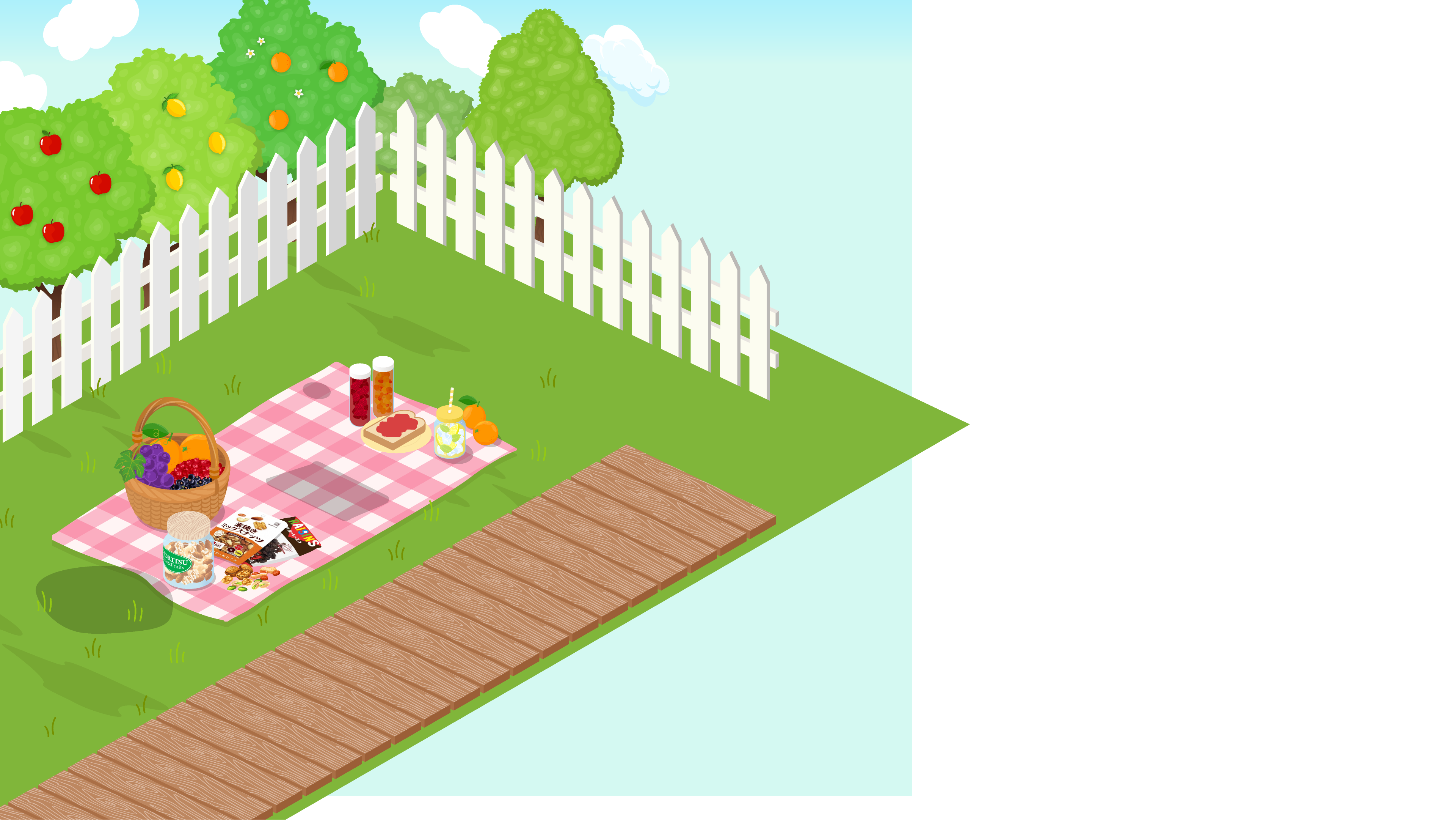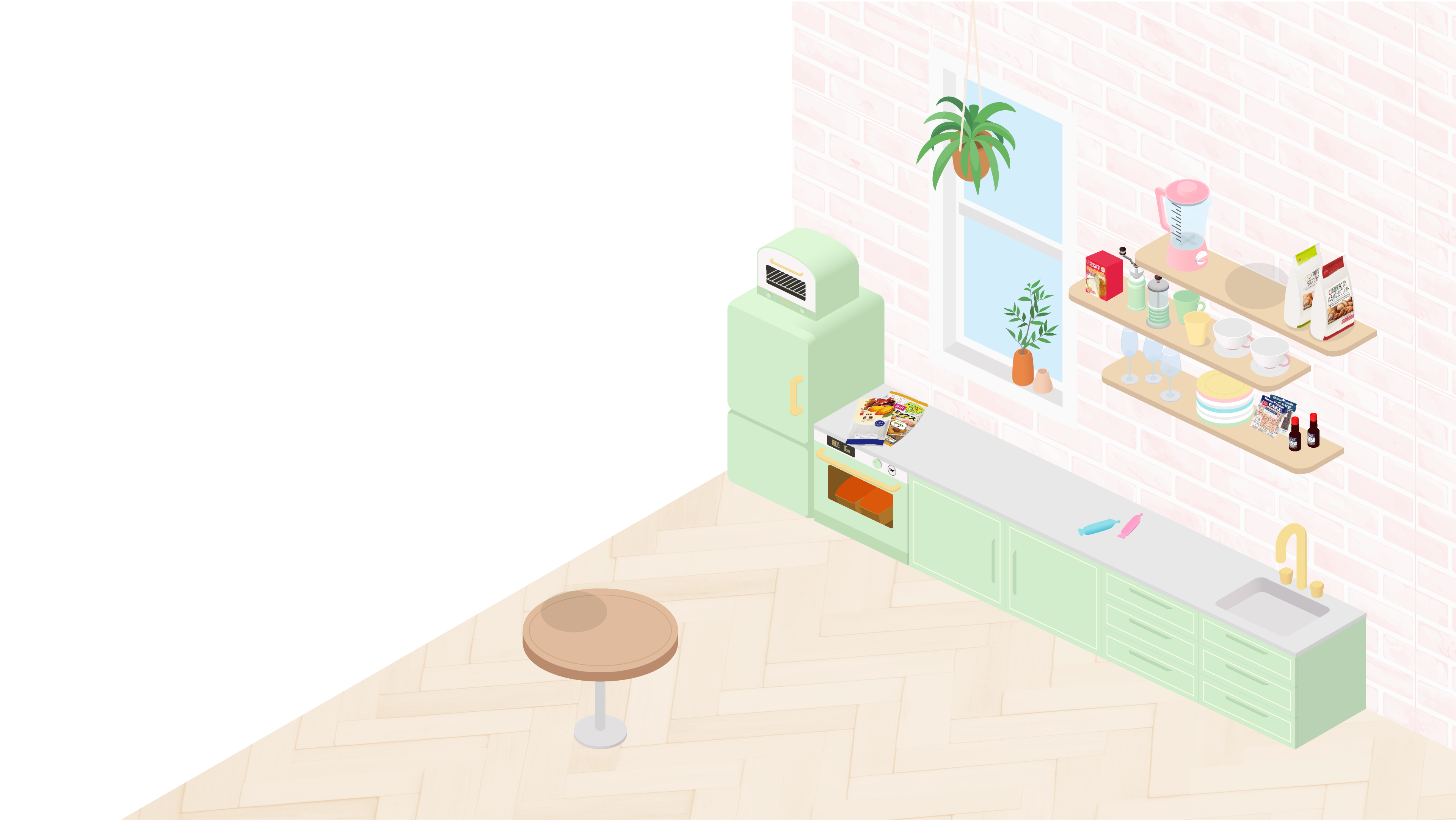 共立食品の世界へようこそ!お部屋やお庭にあるピンをタップすると、共立食品のこだわりや美味しさを体感できます。チョコルンのお家を見に来てね!